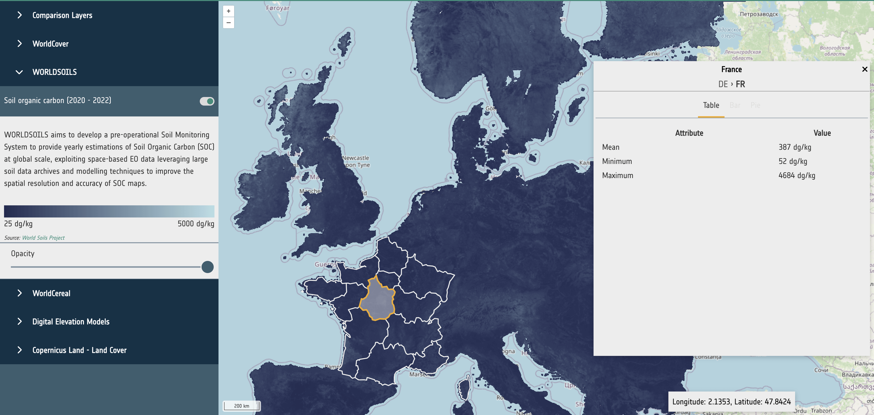 Statistical datasets can be used to store precomputed statistics for dataset variables based on spatial units, such as administrative areas. An example is to collect land cover statistics on using boundaries from nomenclature of territorial units for statistics (NUTS), as shown in the APEx Geospatial Explorer (Statistics). The guidelines in this section are focused on supporting the integration of statistical data for visualisation in the APEx Geospatial Explorer.